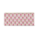 Estampado floral vibrante en tonos caléndula con lujosos detalles dorados y espiral wire-o dorada.