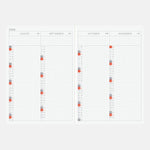 • Incluye calendario anual, calendario mensual e índice anual