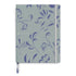 Tiene una cubierta semirígida con un laminado mate, incluye goma de cierre y dos cintas marcapáginas.