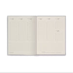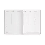 El interior está diseñado de forma vertical de lunes a domingo, tiene una suave malla de puntos o trama cuadriculada (va cambiando cada mes) perfecta para escribir de forma ordenadaCada semana se presenta en 2 páginas en las que cada día está dividido por horas de 6h a 24h. También incluye un espacio amplio en cada semana para notas o listas de tareas y también el calendario mensual.