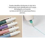Tiene una punta de 0.38 mm para trazos finos y precisos y una goma antideslizante para un uso cómodo.