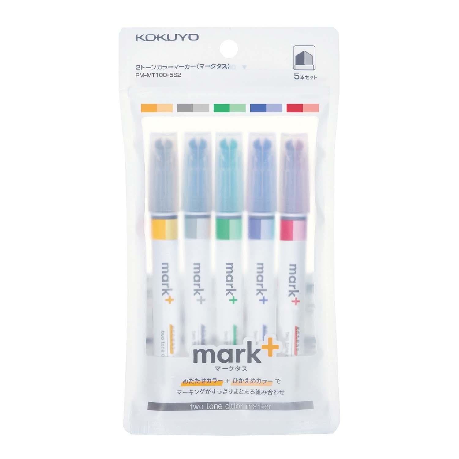 Kokuyo - Mark+ 2 Tone Subrayadores de Doble Punta | Set de 5 | Type 2