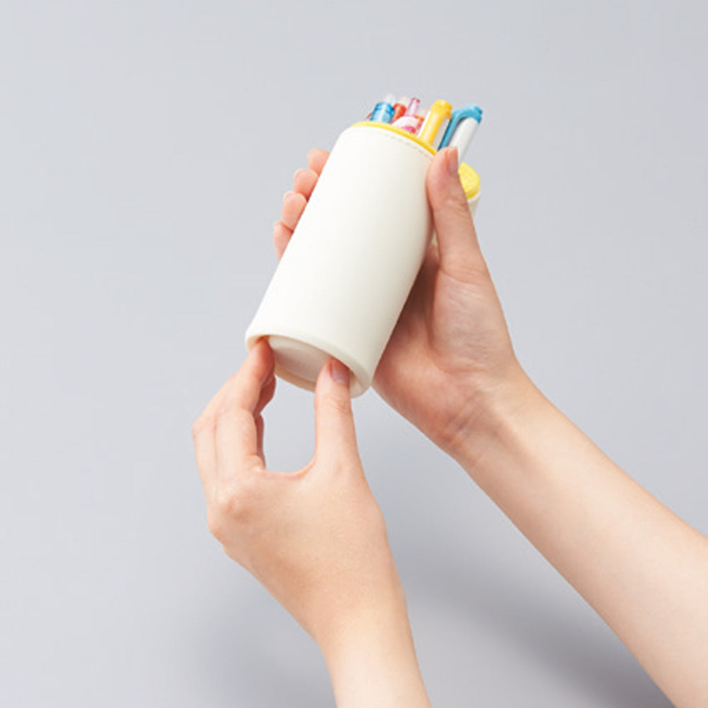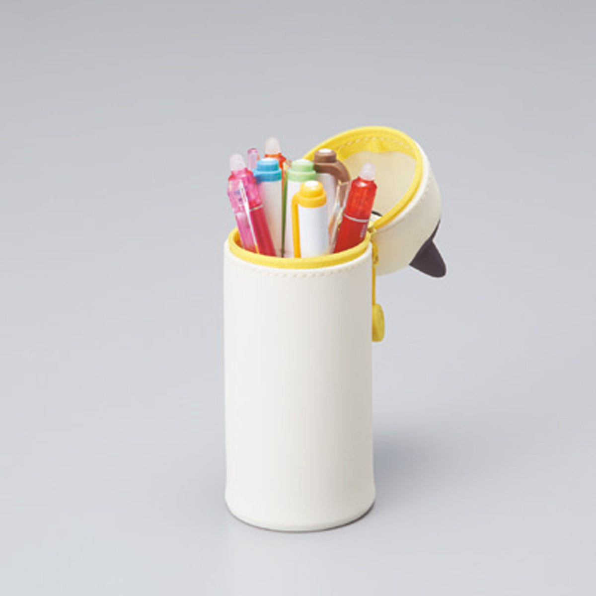 Este adorable estuche tiene capacidad hasta para 15 bolígrafos aproximadamente, depende de el tipo que utilices, tiene una base flexible que te permite mantener de pie el estuche para usarlo cómodamente.
