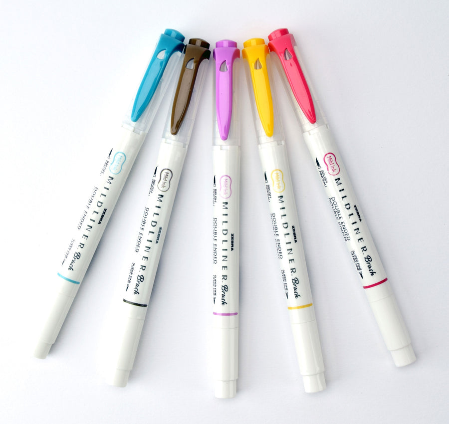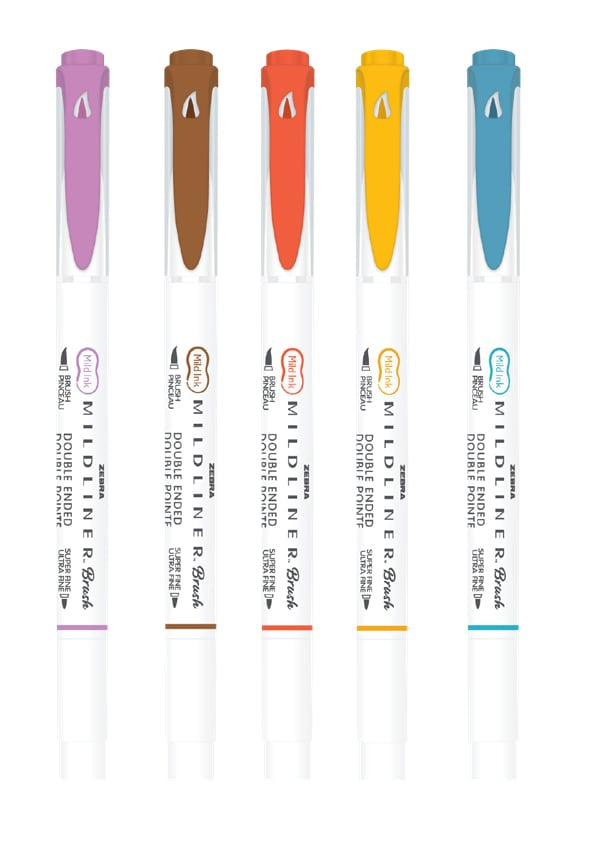 La marca japonesa Zebra es reconocida por los subrayadores Mildliner tan populares por sus colores pastel.  Ahora también disponibles con punta tipo pincel y punta fina perfectos para lettering, ilustración o para decorar tu bullet journal.