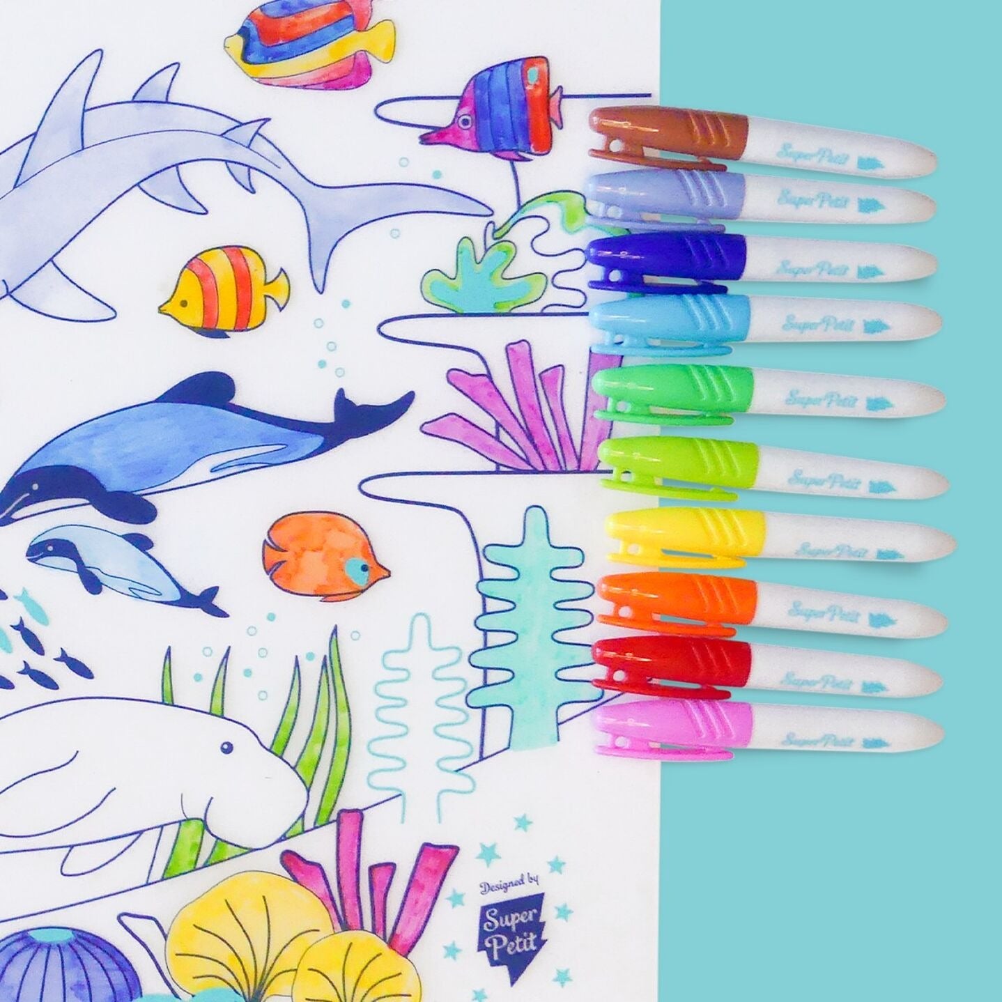 El set de 10 rotuladores borrables de Superpetit incluye una variedad de colores vivos que son perfectos para cualquier proyecto de arte o manualidad. Diseñados para usarse en manteles de silicona y pizarras, estos rotuladores permiten a los niños colorear y dibujar con precisión y detalle.