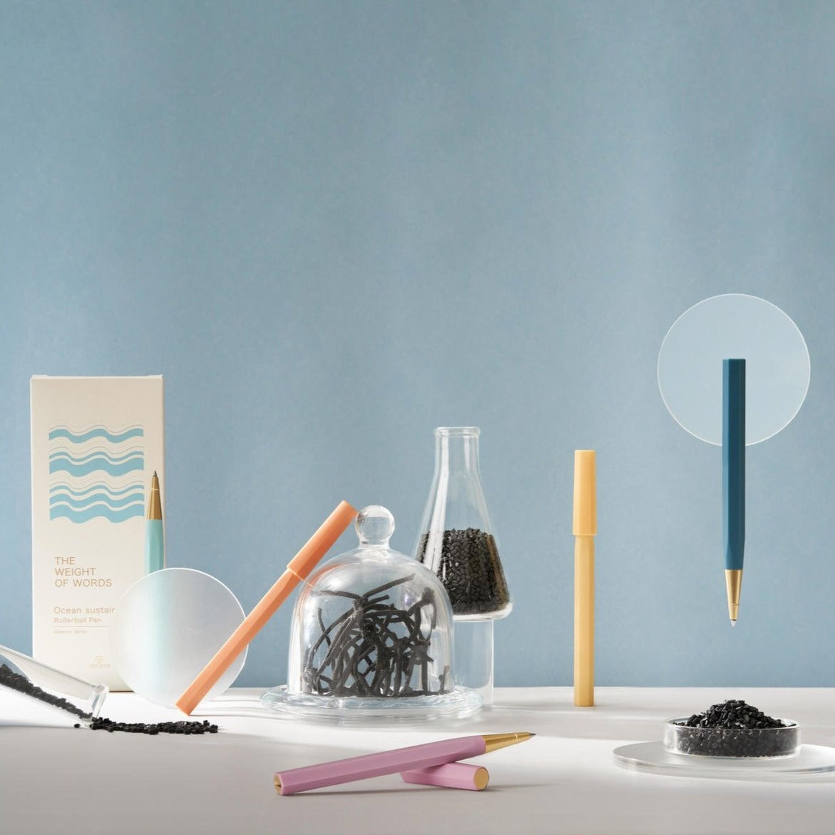 La línea de bolígrafos Ocean Sustainable de YSTUDIO está hecha de redes de pesca recicladas, de las costas de Taiwán, y la paleta de colores está inspirada en las fascinantes tonalidades del mar a lo largo del día.