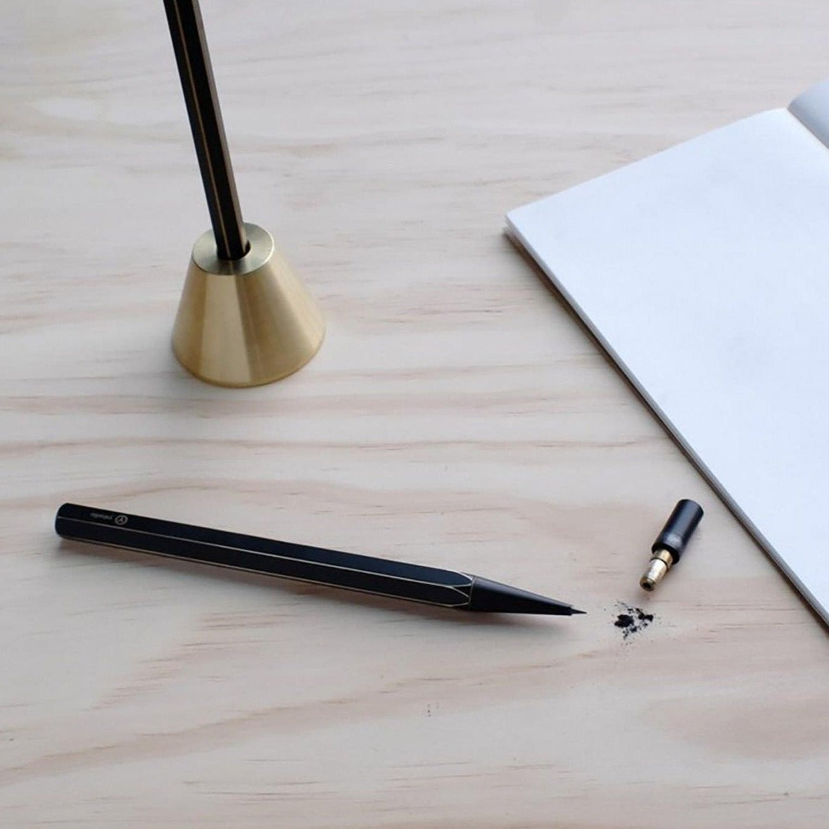 Un portaminas 2.0 pensado para el dibujo, tiene un cuerpo de latón macizo que proporciona un buen equilibrio y estabilidad en la mano. Elegante con un diseño atemporal y minimalista, el producto incluye una lija, con la que puedes eliminar partes de la pintura a tu gusto . Un portaminas tan original y especial como la persona que lo lleva.