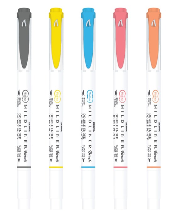 La marca japonesa Zebra es reconocida por los subrayadores Mildliner tan populares por sus colores pastel.  Ahora también disponibles con punta tipo pincel y punta fina perfectos para lettering, ilustración o para decorar tu bullet journal.