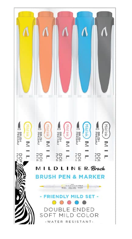 Zebra - Mildliner Brush Rotulador Pincel | Pack de 5 | Friendly Set