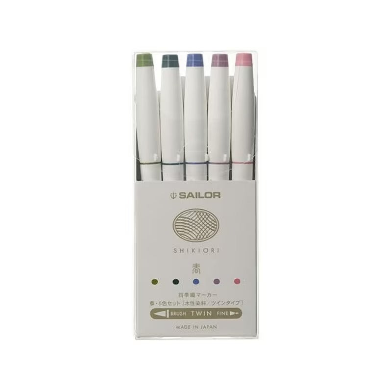 Sailor - Shikiori Calligraphy Brush Pen Set de 5 | Doble punta: Pincel y Fina | Set Primavera