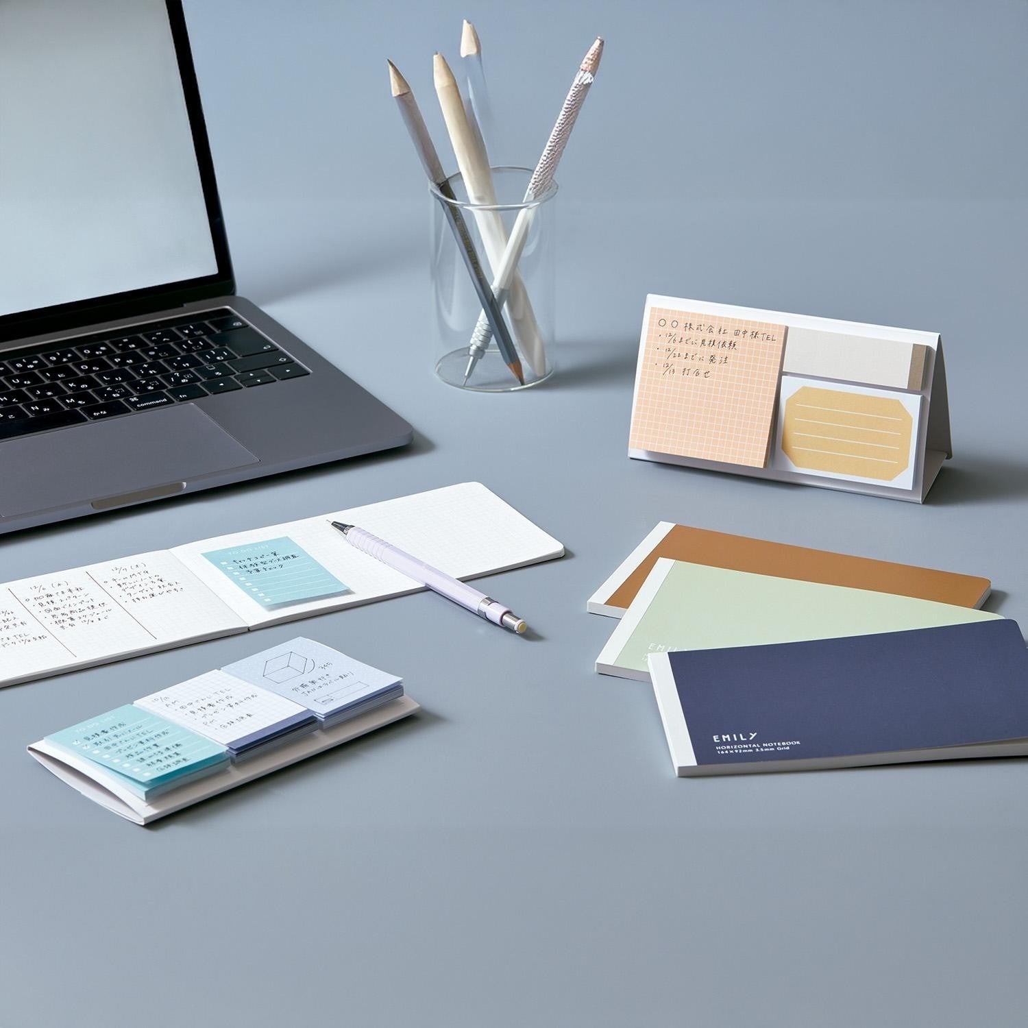 La colección EMILY de King Jim redefine el concepto de notas adhesivas para el entorno profesional. Este surtido  combina tres formatos distintos en un solo accesorio compacto y sofisticado. Su diseño inteligente permite usarlo como un cuadernillo portátil o desplegarlo como un práctico soporte de escritorio. Con una paleta de colores calmados y papel de excelente gramaje, es la herramienta ideal para quienes buscan funcionalidad sin renunciar a la estética minimalista japonesa.