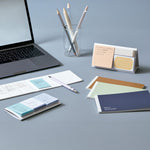 Presentado en un estuche tipo libreta de colores suaves y acabados premium. Su estructura rígida permite colocarlo verticalmente sobre la mesa, manteniendo tus recordatorios siempre a la vista.