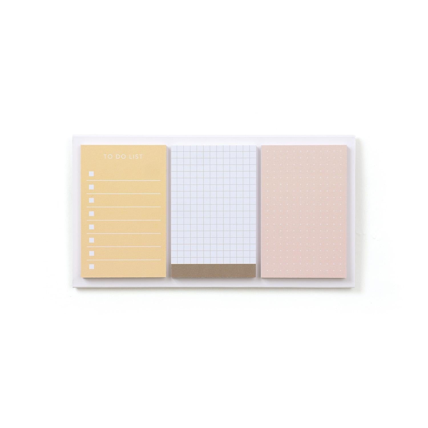 Set de notas adhesivas plegables con función de soporte de sobremesa y diseño minimalista.
