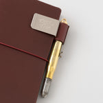Se engancha fácilmente a la portada de tu TRAVELER’S notebook y permite sujetar lápices o bolígrafos de hasta 12 mm de diámetro.
