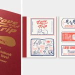 Este recambio especial en tamaño Passport tiene una cubierta roja con el diseño de LOVE AND TRIP estampado en foil, e interior de papel MD Cream, suave, cálido y apto para todo tipo de tinta.