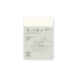 Cuando se pasa la punta del lápiz sobre el papel MD, ligeramente rugoso, se puede escuchar un pequeño sonido en la punta del lápiz. Midori utiliza el papel desarrollado desde el año 1960, acabado con una textura tan exquisita que permite disfrutar de la experiencia de la escritura.