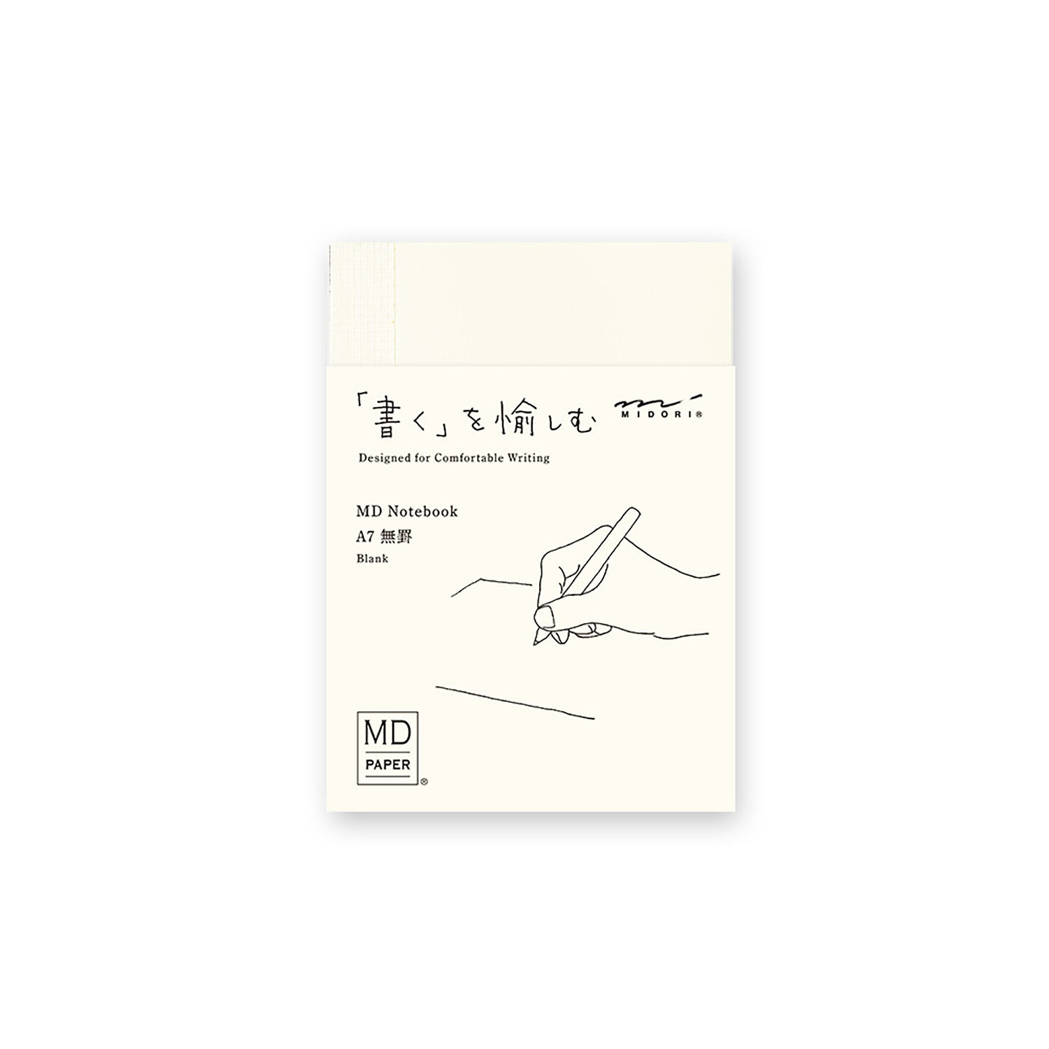 Cuaderno MD Paper A7, el más pequeño de la marca, con hojas lisas - 176 páginas.