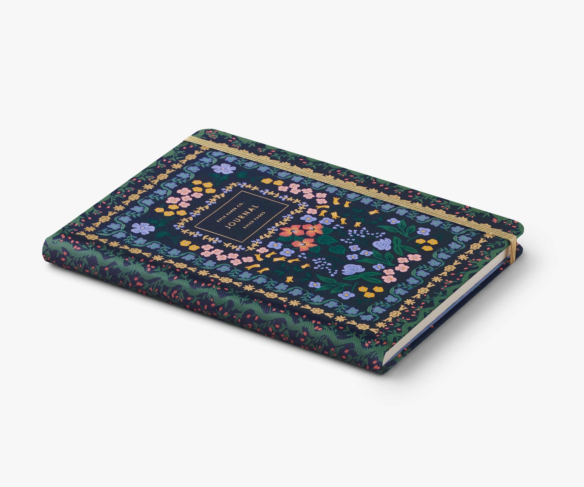Descubre el arte de plasmar tus pensamientos, sueños y objetivos en el diario de Rifle Paper Co., diseñado para custodiar tus recuerdos más valiosos. Este bonito cuaderno se acompaña de un elegante bolígrafo dorado, para que estés preparada en todo momento para inmortalizar esos destellos de inspiración, sin importar dónde te encuentres.