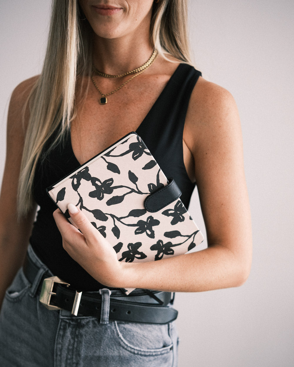 Un cuaderno A5 con un diseño floral sofisticado y hojas de puntos, ideal para tus notas, ideas y momentos de inspiración.