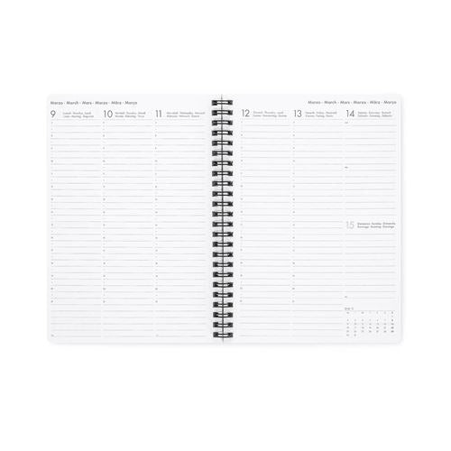 Planifica tu año 2026 con esta agenda de 12 meses con organización de semana vista. Su formato Large ofrece el espacio perfecto para anotar todas tus tareas y compromisos de manera clara, incluyendo herramientas útiles como un diccionario multilingüe y un planificador extraíble.