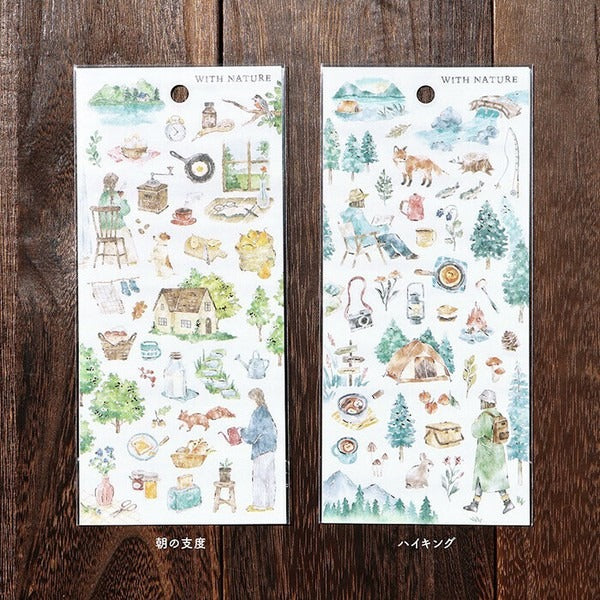 La colección de pegatinas With Nature de la marca japonesa Mind Wave combina el arte de la ilustración en acuarela con delicados detalles dorados que realzan cada diseño, creando piezas llenas de encanto y nostalgia. Inspiradas en escenas cotidianas rodeadas de naturaleza, estas pegatinas evocan tranquilidad, simplicidad y conexión con el entorno. Desde paisajes serenos hasta momentos hogareños, cada hoja de la colección cuenta una historia única, perfecta para personalizar diarios, agendas, cartas o cualquier proyecto creativo.