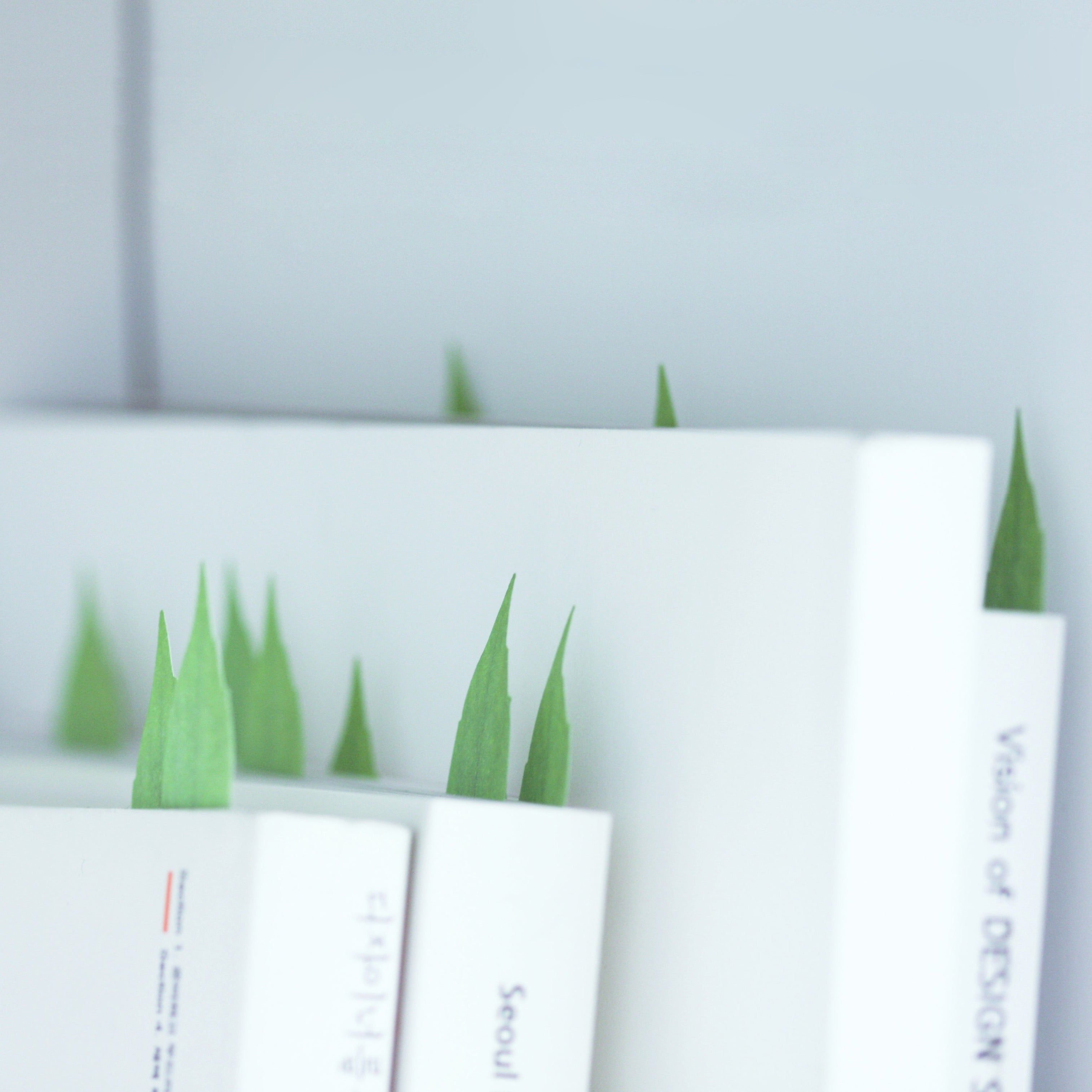 La línea de notas adhesivas de Appree se creó y se inspiró en los recuerdos de secar las hojas y flores presentes en las distintas estaciones para utilizarlas como marcapáginas.