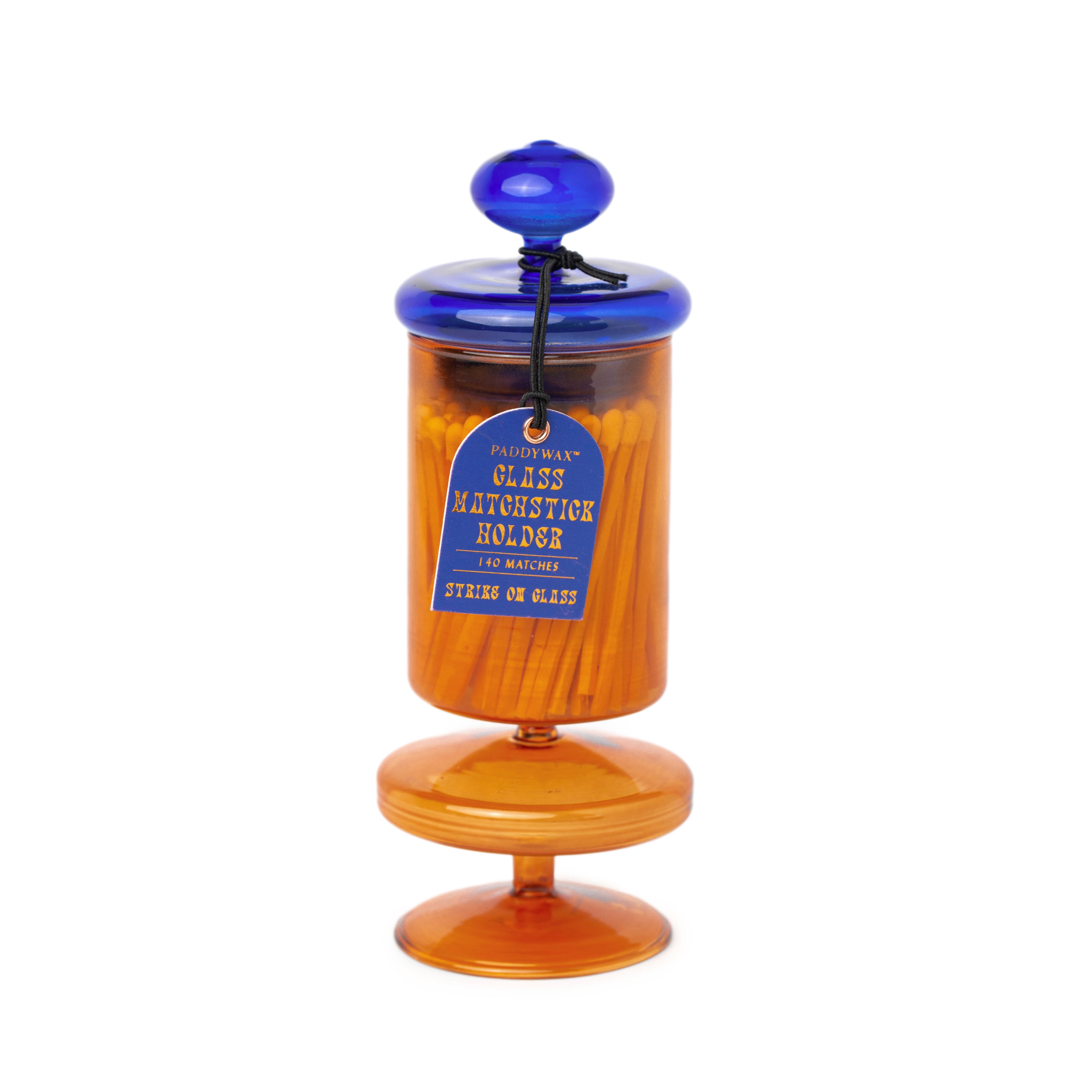 Paddywax - Soporte de cerillas de vidrio con cerillas de seguridad de 6,5 cm (140 unidades) - Funky Amber