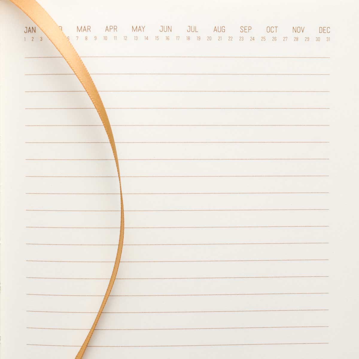 • 160 páginas con líneas, cada página incluye un encabezamiento con el día/mes que te permitirá usarlo como agenda perpetua o bullet journal, incluye una página para poner un índice o clave de íconos.