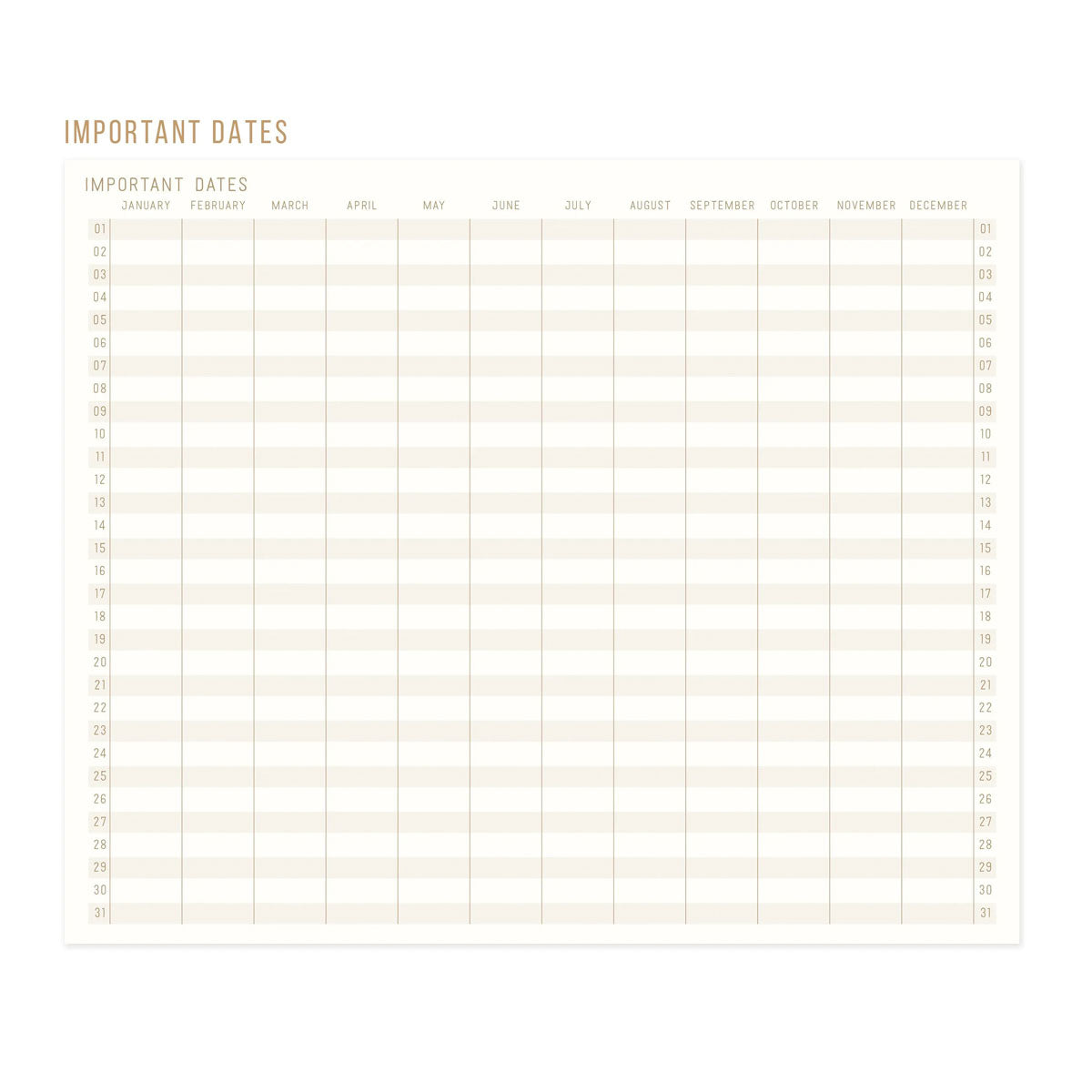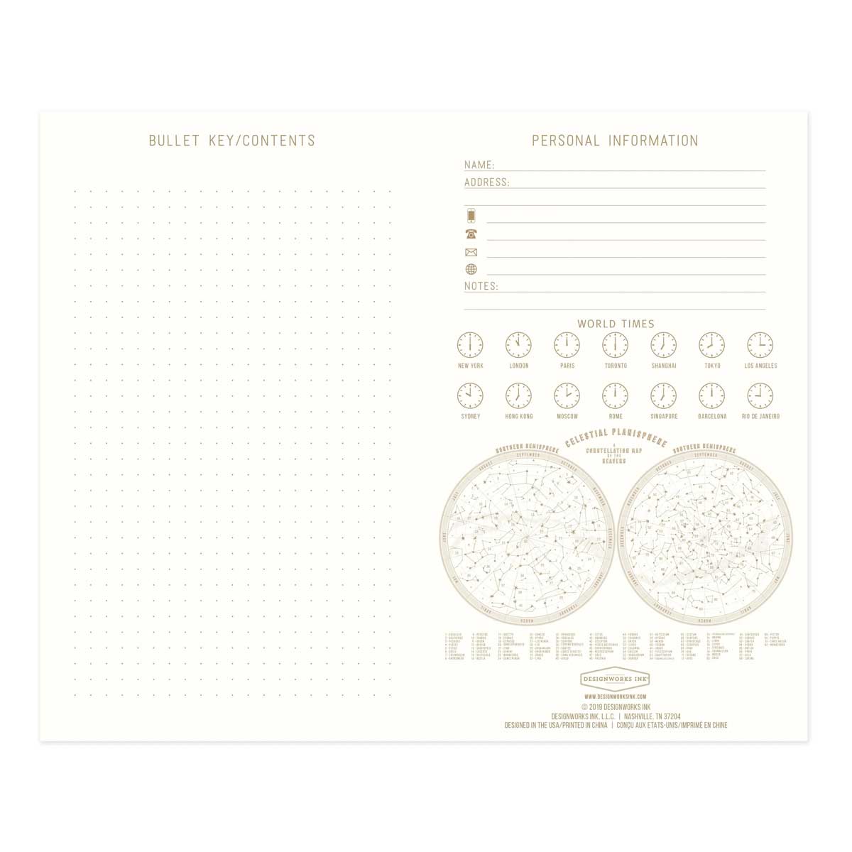 Incluye un calendario anual perpetuo a doble página para que puedas señalar las fechas importantes y una página para poner un índice o clave de íconos.