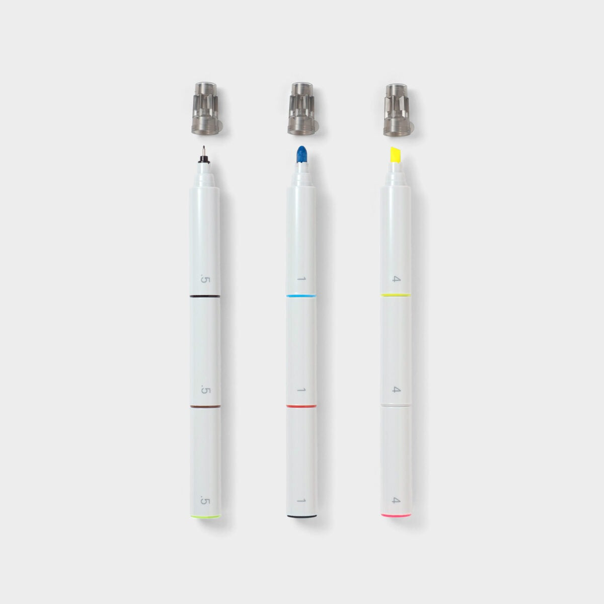 Este set de rotuladores ofrece un diseño modular y apilable que permite crear combinaciones personalizadas para cada tarea. Con nueve secciones intercambiables, que incluyen tres colores de subrayadores, 3 rotuladores de punta ancha y 3 de punta fina, puedes adaptarlo según tu estilo o necesidades de trabajo. El diseño es perfecto para quienes valoran la versatilidad y la organización, ya que te permite apilar y combinar secciones según el color o tipo de punta que necesites. Tanto para estudiar, dibujar o planificar, las posibilidades de combinación son infinitas.