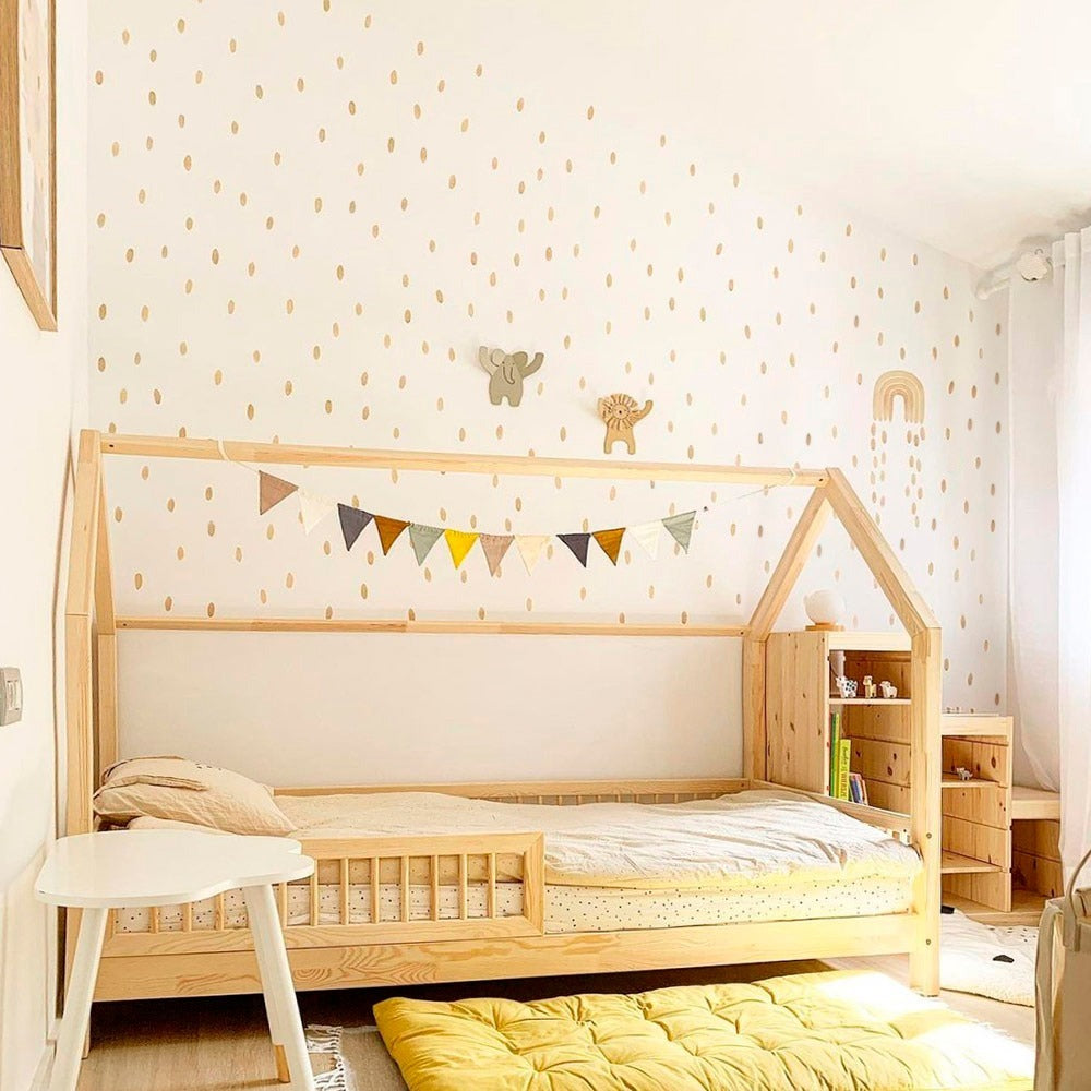 Puedes combinar diferentes adhesivos para crear una decoración personalizada efecto papel pintado, jugando con el espaciado y la colocación de las pegatinas.