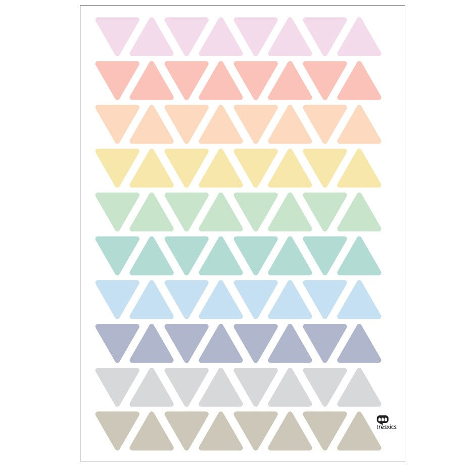 Transforma cualquier pared con los adhesivos de triángulos de Tresxics. Este pack incluye múltiples triángulos en colores variados, perfectos para crear un ambiente moderno y divertido. Muy fáciles de aplicar y remover, puedes usarlos en cualquier superficie no porosa, incluyendo gotelé. Hechos de vinilo texturado y mate de alta calidad, estos triángulos parecen pintados directamente en la pared, añadiendo un toque artístico y dinámico.