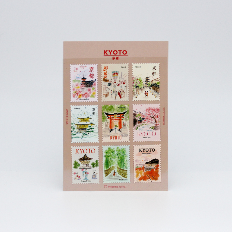 Decora tus diarios de viaje, correspondencia o proyectos de scrapbooking con este set de 9 sellos adhesivos inspirados en Kioto. Cada pieza captura la esencia de los monumentos y vistas más emblemáticas de la antigua capital japonesa de forma elegante.