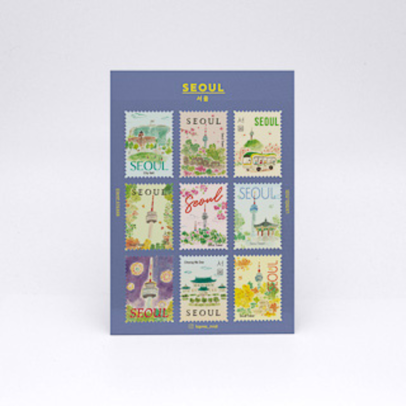 Personaliza tus cartas, diarios o proyectos creativos con este set de nueve sellos adhesivos dedicados a la ciudad de Seúl. Cada pieza ilustra monumentos emblemáticos y paisajes urbanos característicos, ofreciendo una estética viajera única para tu colección de papelería.