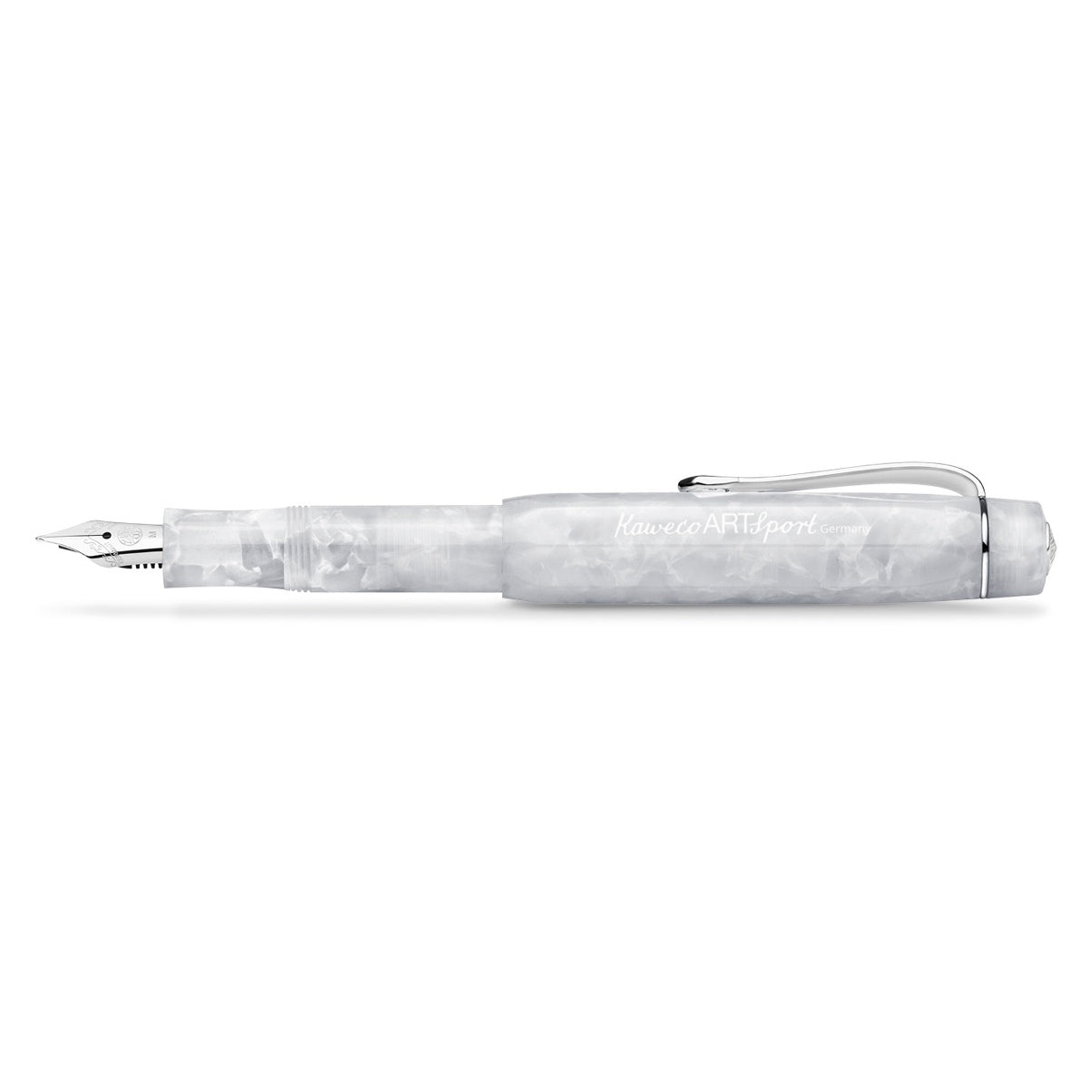 Descubre la incomparable elegancia de la línea Kaweco ART Sport. Hecha de acrílico de primera calidad, esta pluma es más que una herramienta de escritura, es una obra de arte. Con un diseño de aspecto craquelado blanco y traslucido, cada pluma se convierte en una pieza única digna de colección. Los detalles plateados añaden un toque de frescura y realzan el aspecto de hielo de la pluma. Además, su clip montado de manera permanente asegura un agarre firme, perfecto para llevarla contigo en tus viajes o fijarla a tu bloc de notas. Con la línea Kaweco ART Sport, tu estilo y elegancia siempre estarán presentes en cada palabra que escribas.