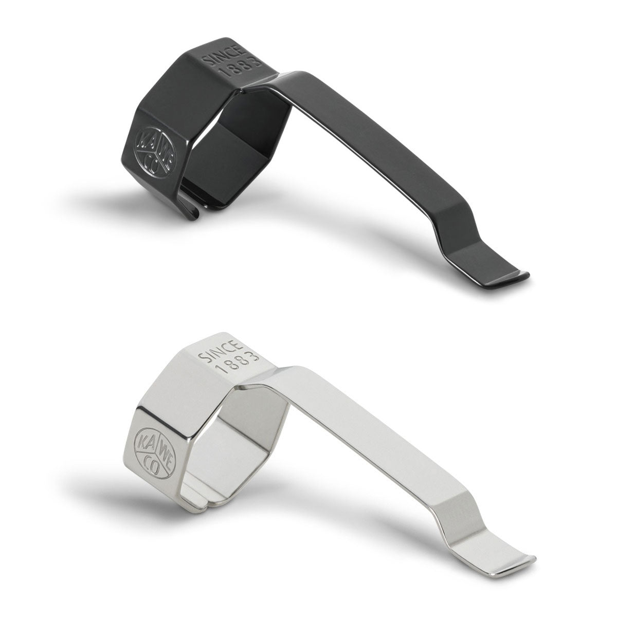 El diseño recto y sencillo del clip de Kaweco para la serie Perkeo, tiene un sutil grabado del logotipo y está disponible en dos colores, negro y plateado.