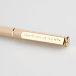 El bolígrafo color crema con acabado dorado de la colección Basic Studio combina sofisticación y funcionalidad. Diseñado para destacar en cualquier ocasión, cuenta con tinta líquida negra y una punta de 0,7 mm que garantiza una escritura fluida y precisa. Su diseño ergonómico y materiales de alta calidad lo convierten en un accesorio imprescindible para profesionales y amantes de la escritura. Perfecto como regalo o para elevar tu colección de papelería, este bolígrafo fusiona estilo y rendimiento en cada trazo.