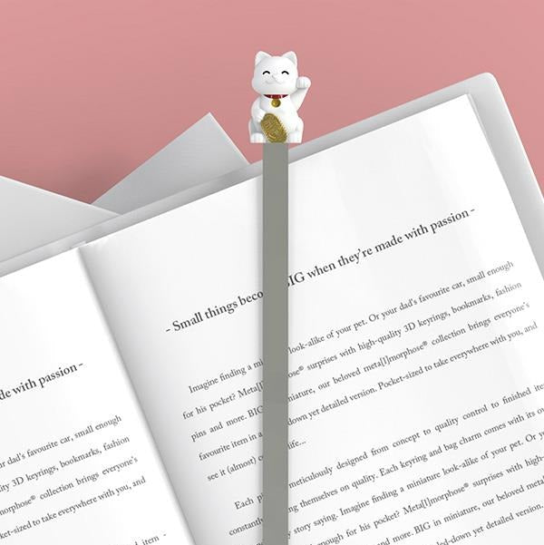 Marcapáginas 3D en forma de gato de la suerte, el acompañante perfecto para tu libro o journal. Un toque de suerte y estilo en cada lectura.