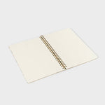 La encuadernación espiral wyro asegura durabilidad y facilidad al pasar las páginas, mientras que las tapas, forradas artesanalmente en papel estampado, destacan con un diseño único de delicadas flores, evocando sensaciones de calma y inspiración. Ideal para diarios personales, bocetos, o como un regalo especial para alguien que aprecia los detalles y la calidad.