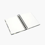 Libreta tamaño A6 con hojas blancas lisas. Encuadernación con espiral wyro y con las tapas forradas artesanalmente en papel estampado con unas bonitas flores.