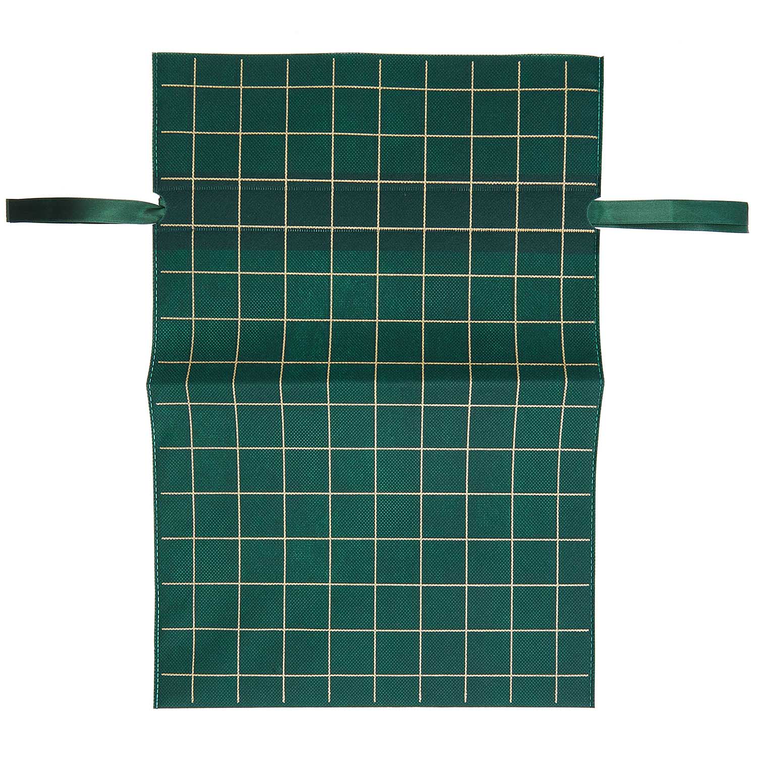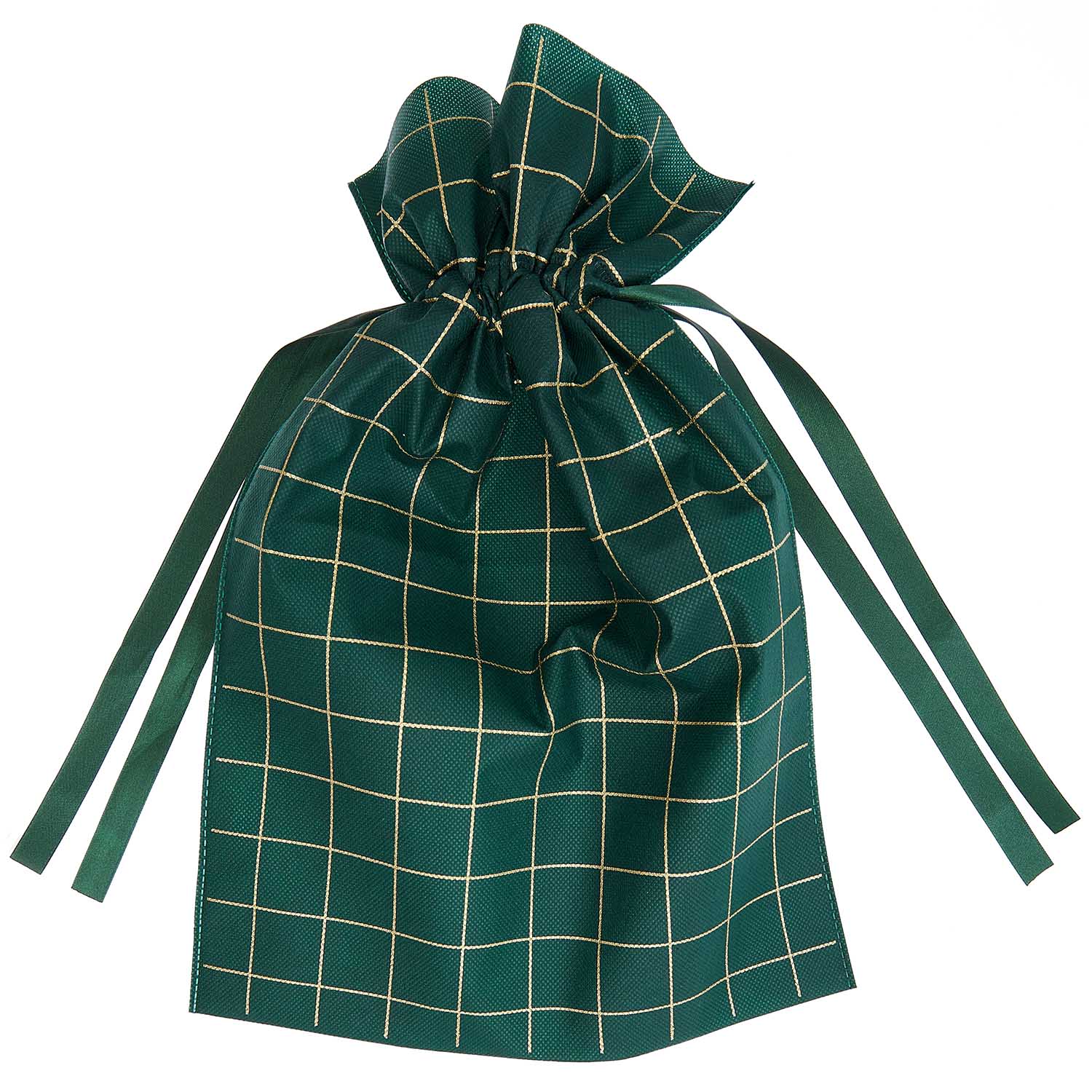 Bolsa de regalo de tela verde con detalles dorados, resistente y elegante, perfecta para sorprender con estilo en cualquier ocasión.
