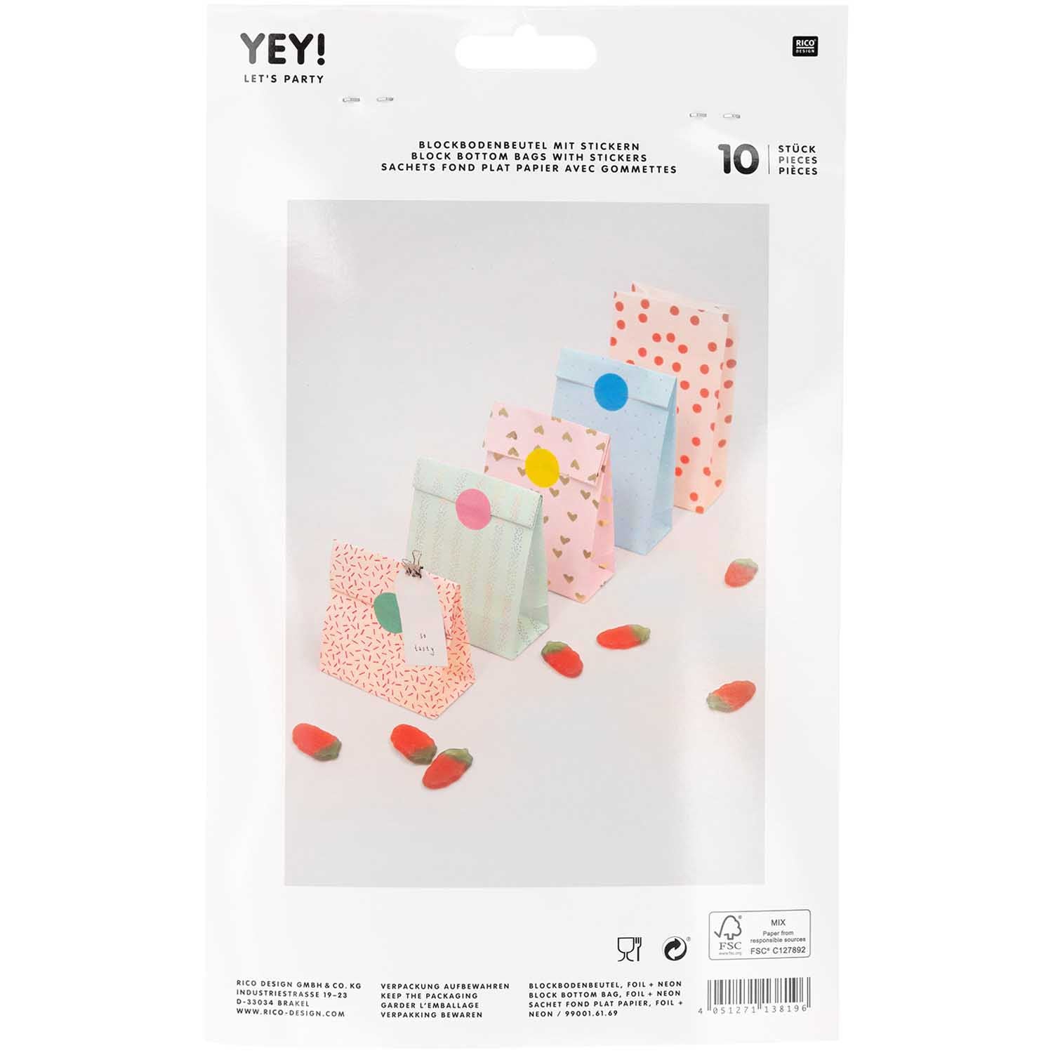 Rico Design - Pack de 10 Bolsas de Regalo Block Bottom Bag | S