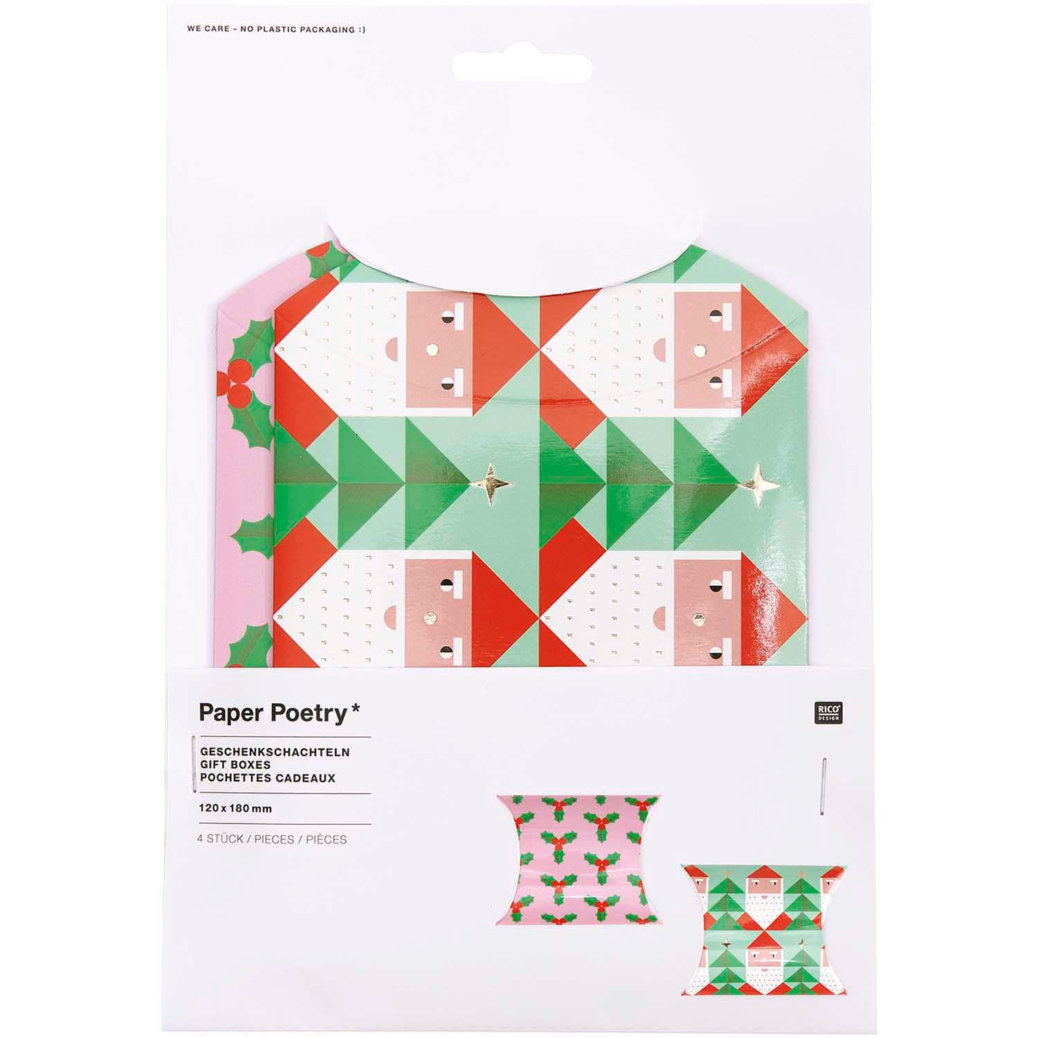 Rico Design - Pack de 4 Cajas de regalo 12x18cm | Merry Christmas