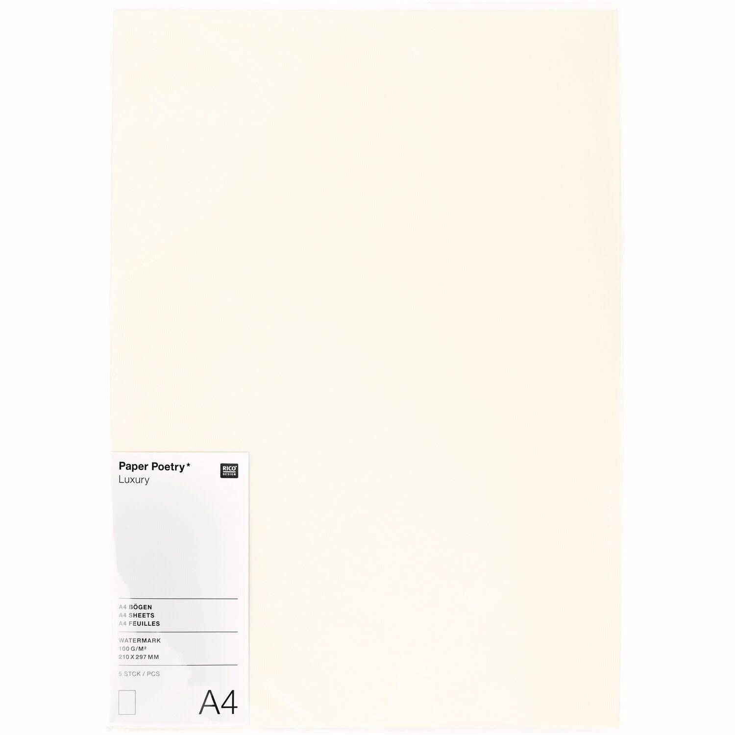 Rico Design - Paper Poetry Luxury Pack de 5 hojas A4 100 g/m² | Ivory