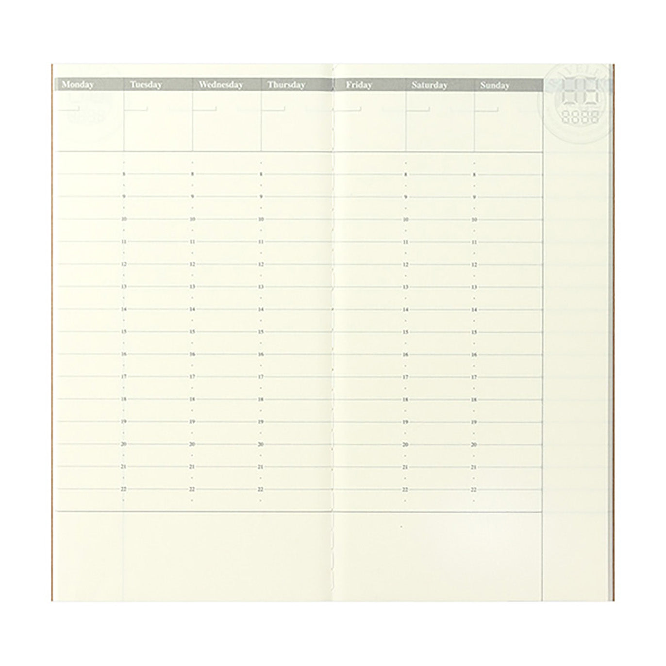 TRAVELER'S Notebook Refill 018, Undated Vertical Weekly Planner for 6 Months (28 Weeks), Regular Size.