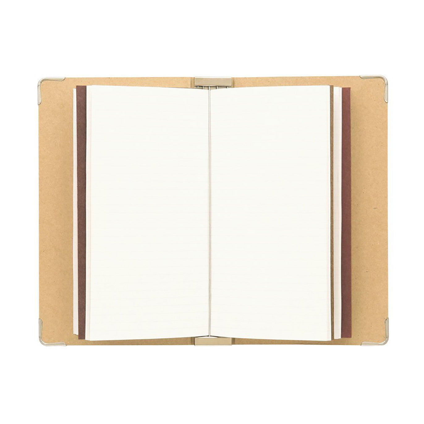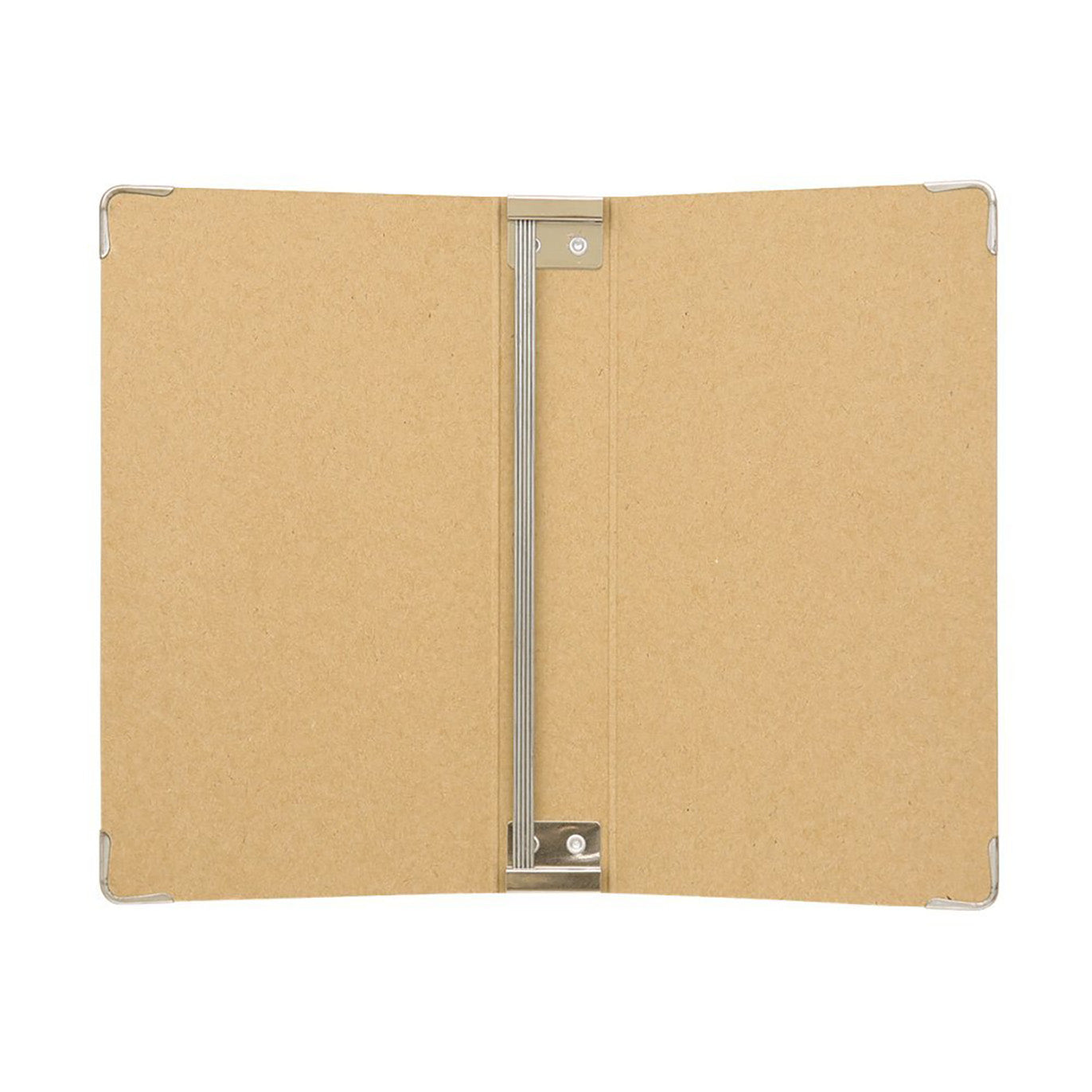 TRAVELER'S Notebook 011 filing binder for notebooks. Everything you have written, drawn, all your thoughts... each memory deserves to be kept in a special place, and this folder is designed just for that, it has the capacity to file up to 5 notebooks. You simply have to adjust each metal rod to each notebook.