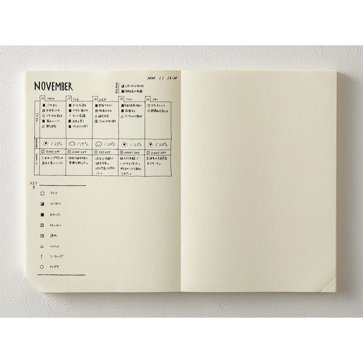 Midori MD Paper - MD Notebook Journal Codex 1Day 1Page - Notebook | A5 | Sheets with dot mesh