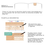 This beautiful ruler is very thin at only 0.3mm thick. It has a clip so you can use it as a bookmark and always have it in your notebook and 30 types of beautiful templates to decorate your agenda and bullet journal.