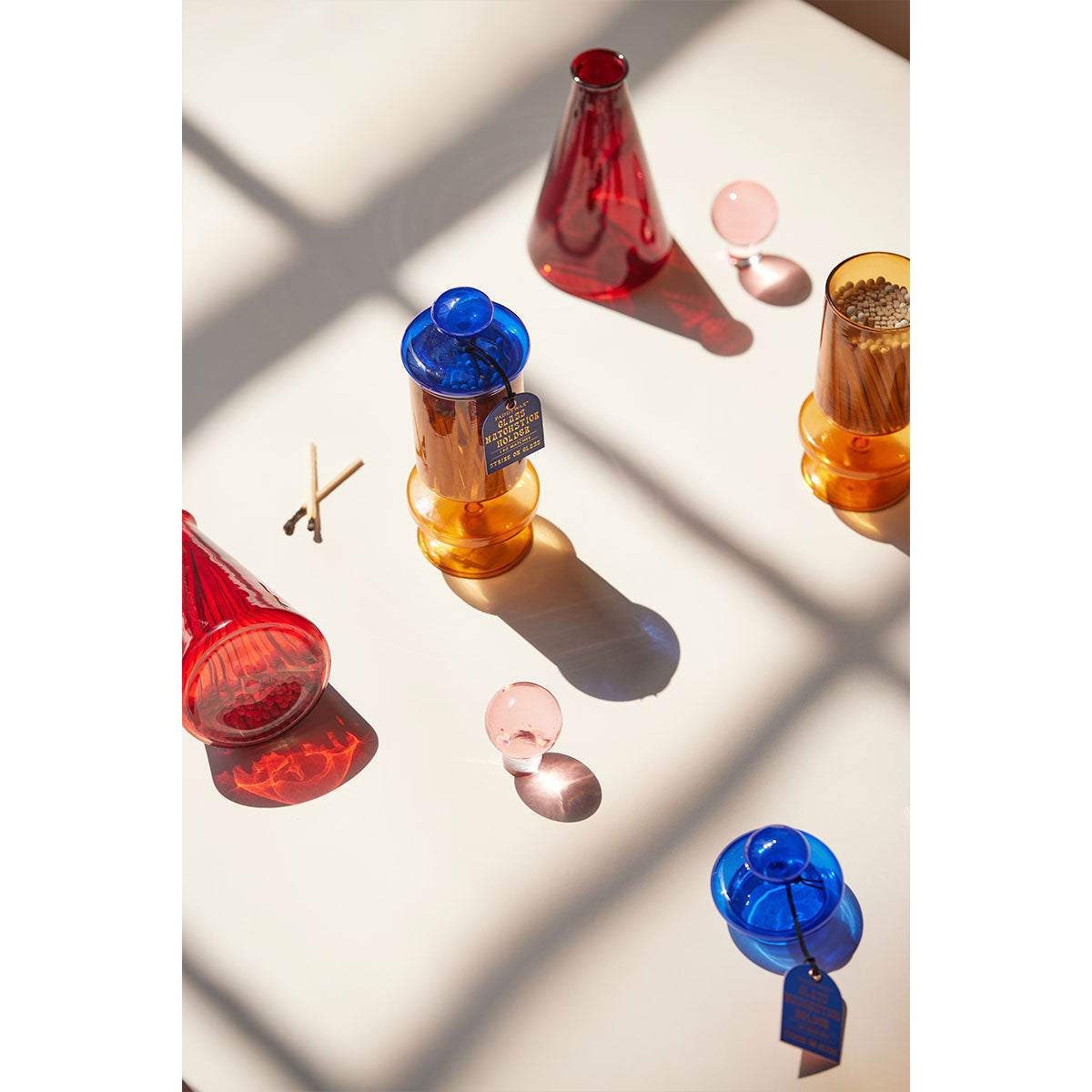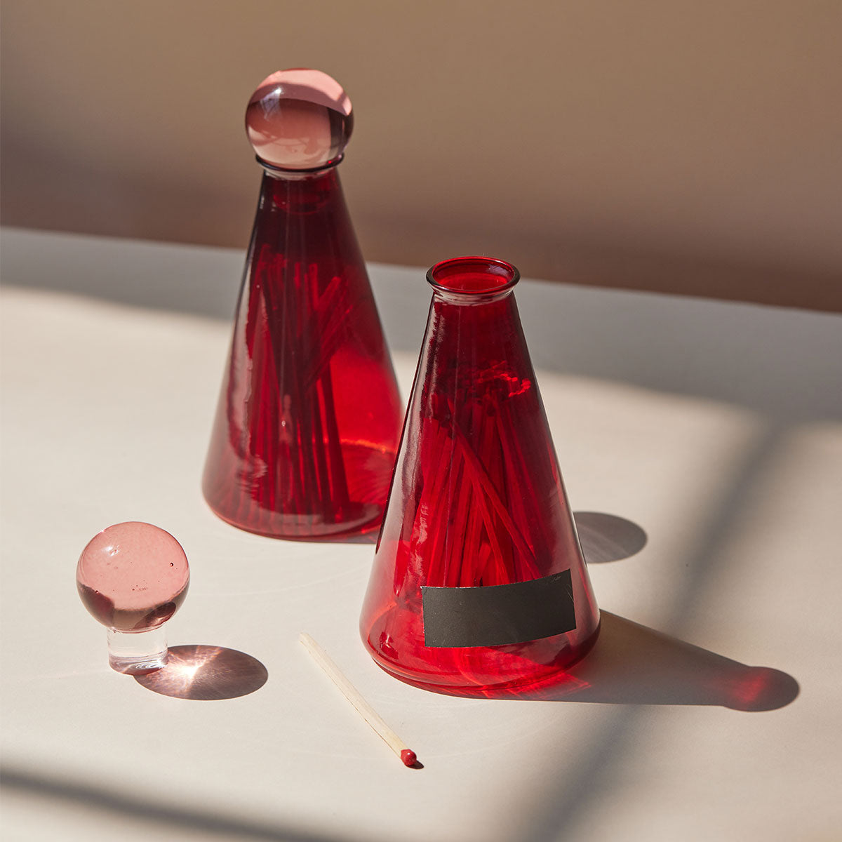 The "Volcano Red" match holder by Paddywax is an elegant blend of design and functionality. This cone-shaped holder, made of vibrant red glass, contains 80 matches (10 cm), perfect for lighting your candles or incense in style.