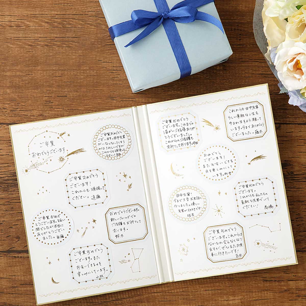This pretty set of stickers transfers simply by rubbing it with a finger. You will love the result since it integrates with the the paper as if it were painted, for a finish as if it had been stamped with gold foil. It's great for personalizing a notebook cover, decorating your bullet journal, or adding a special touch to a greeting card.
